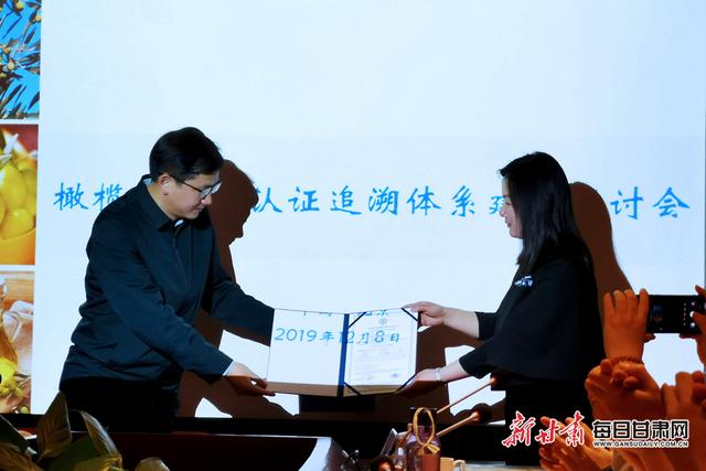 會(huì)上,主辦方向隴南市祥宇油橄欖開發(fā)有限責(zé)任公司頒發(fā)了中國(guó)首張?zhí)丶?jí)初榨橄欖油認(rèn)證證書。