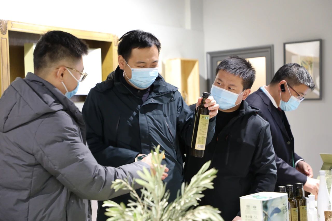 在產(chǎn)品品鑒區(qū),劉玉紅董事長邀請理事長及各位領(lǐng)導(dǎo)品鑒了2020年祥宇特級(jí)初榨橄欖油、