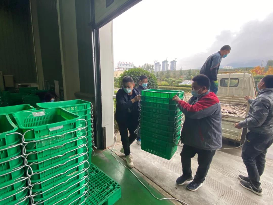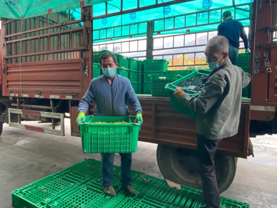 鮮果收購現(xiàn)場,所有工作人員都佩戴好口罩,過磅、驗果、卸車、入庫等工作在有序進(jìn)行。